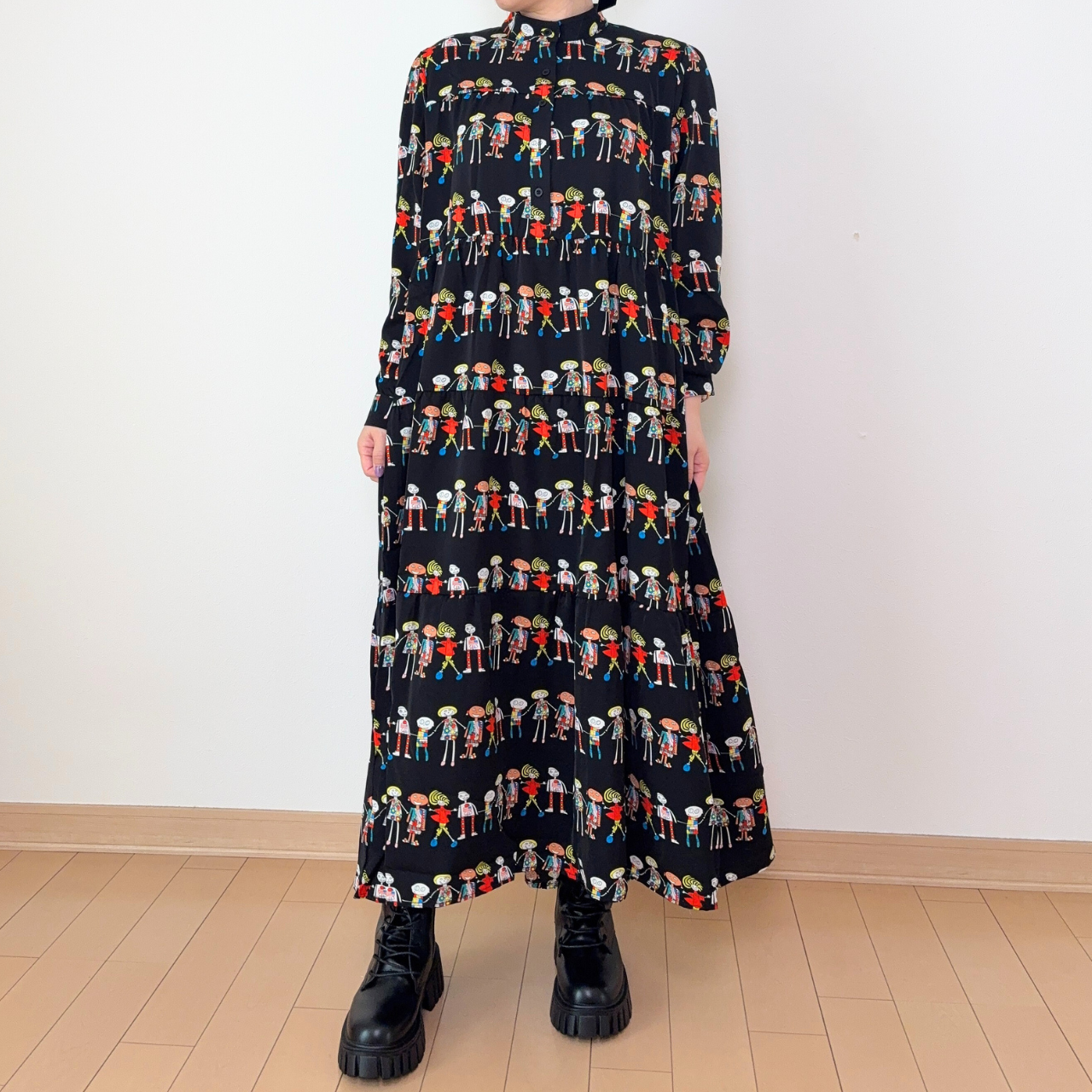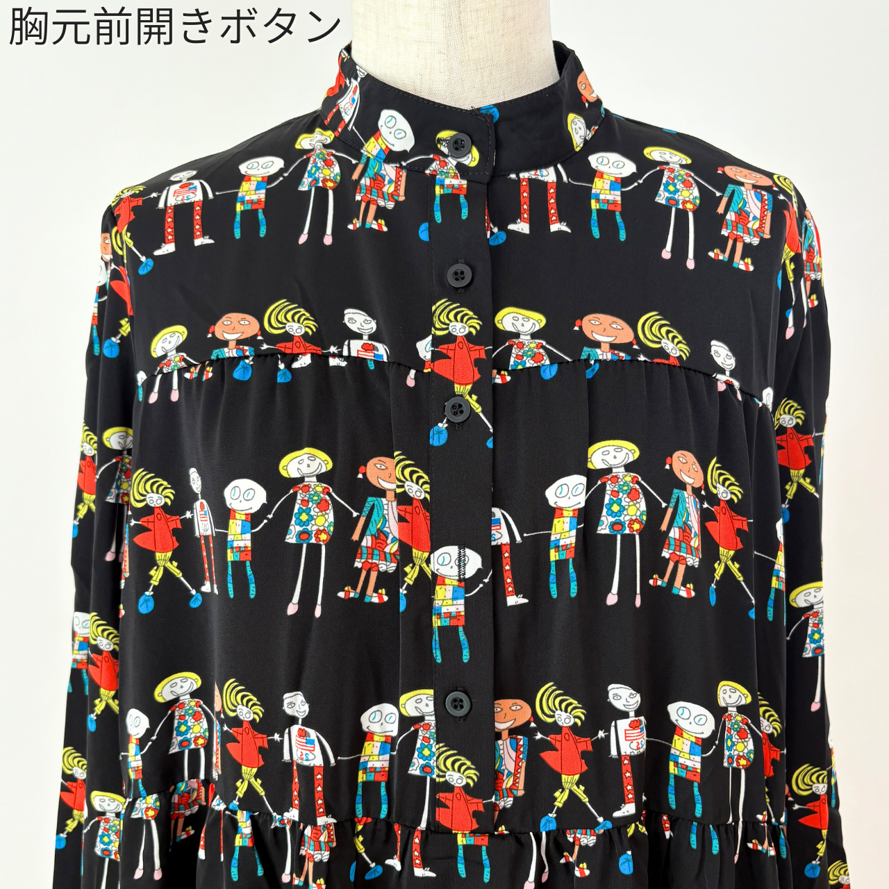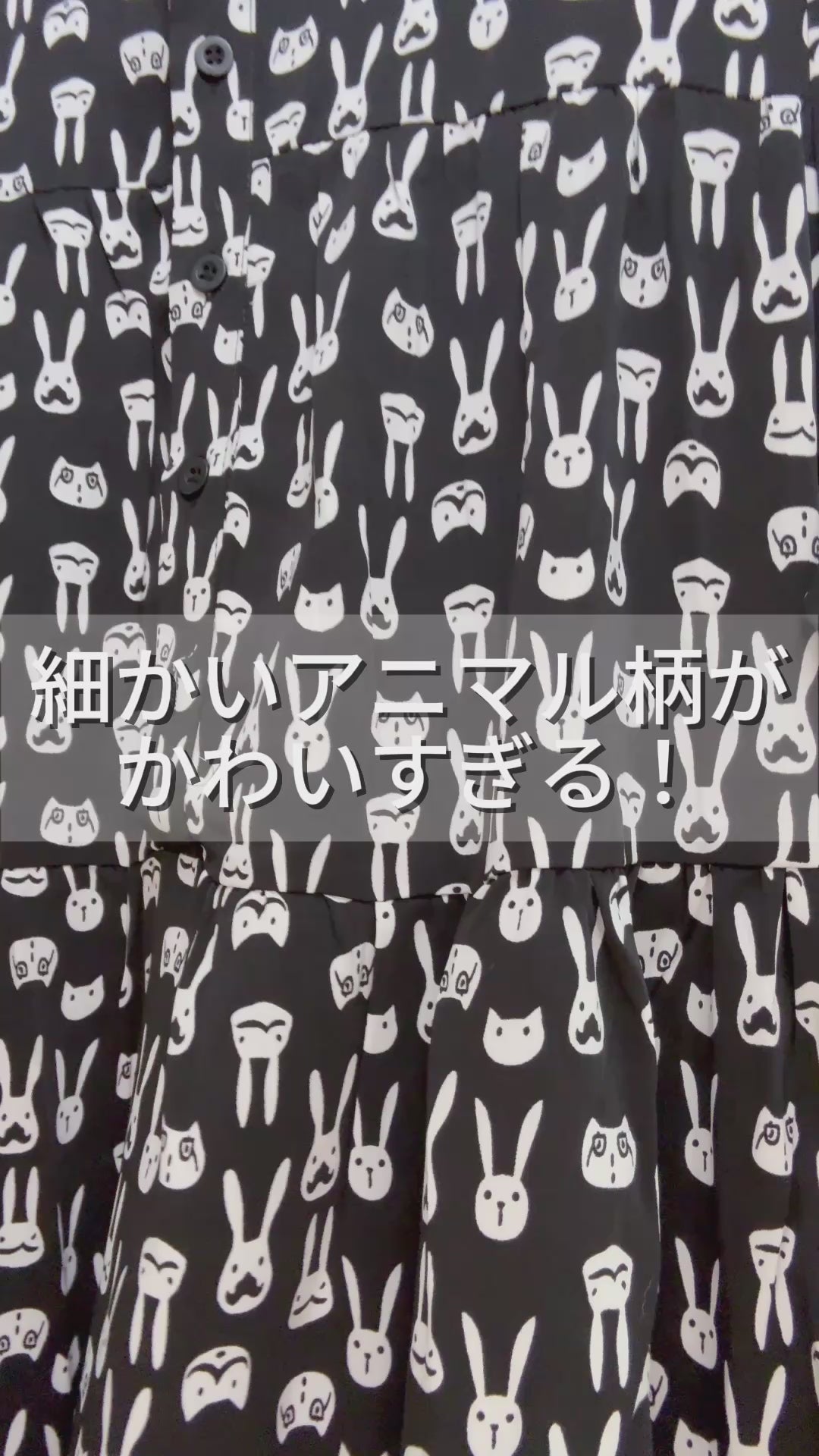 【プルオーバー】前ボタンロングワンピース|3柄 ラビット/モノトーン手書き風アニマル/フィギア