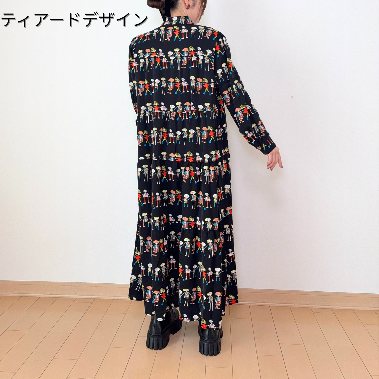 シルエット:ゆったりとしたティアードデザインで、締め付け感のない体型カバー。