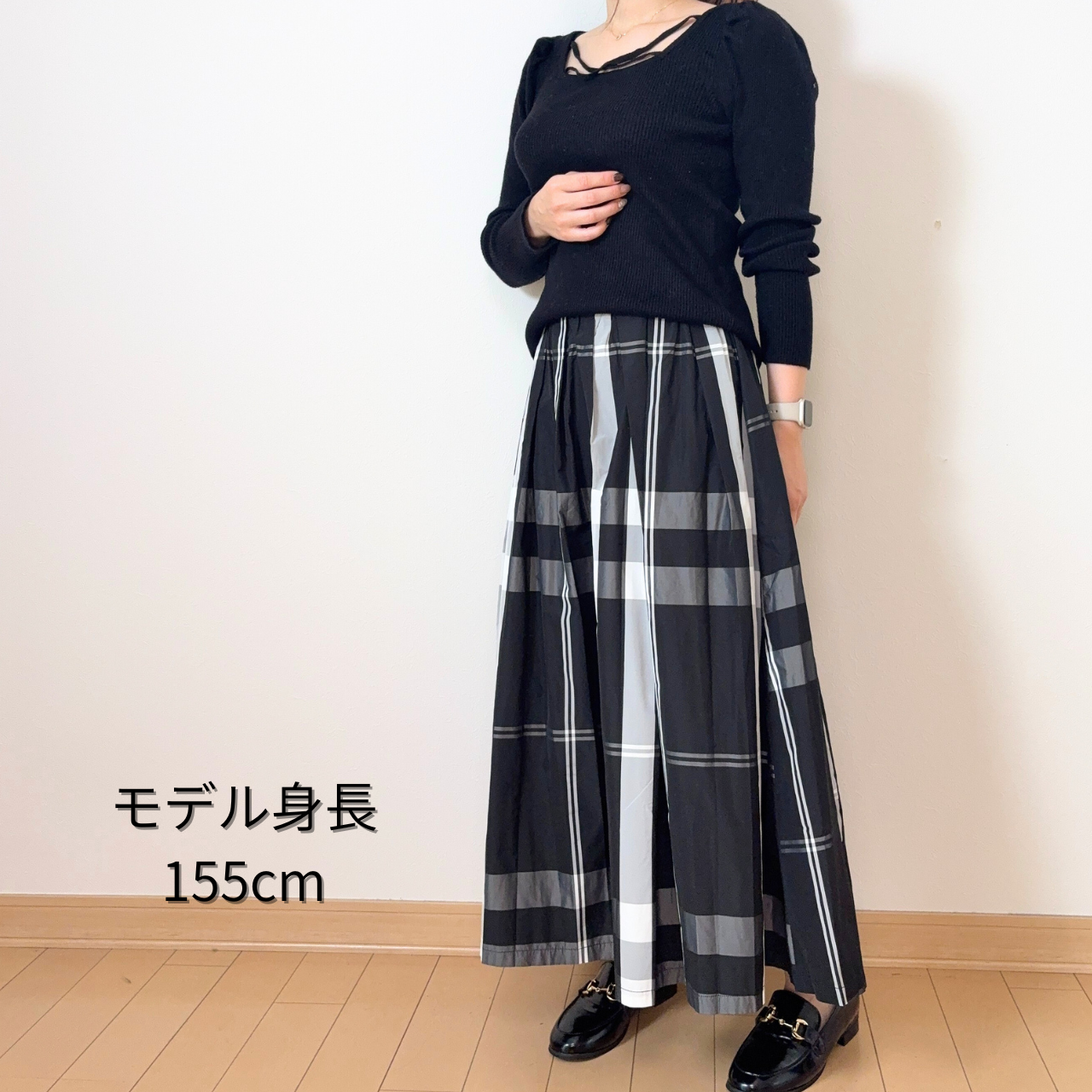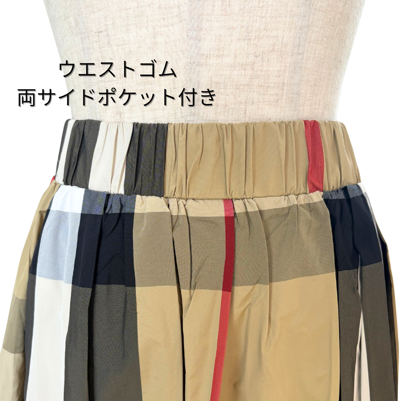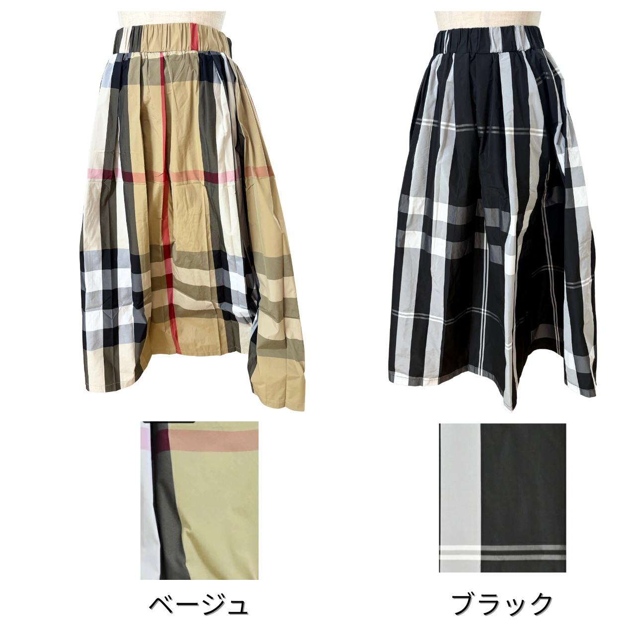 光沢タフタ チェックスカート|ベージュ・ブラック 2カラー展開/ウエストゴム仕様