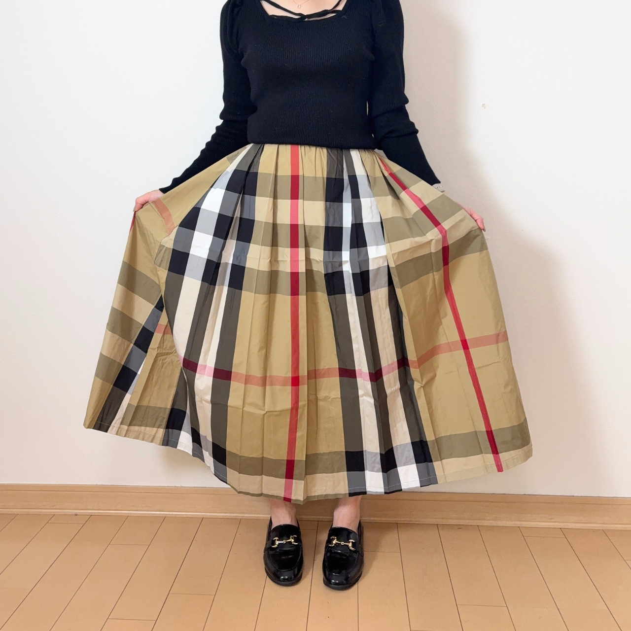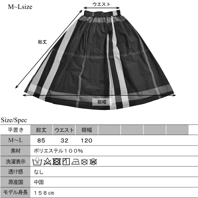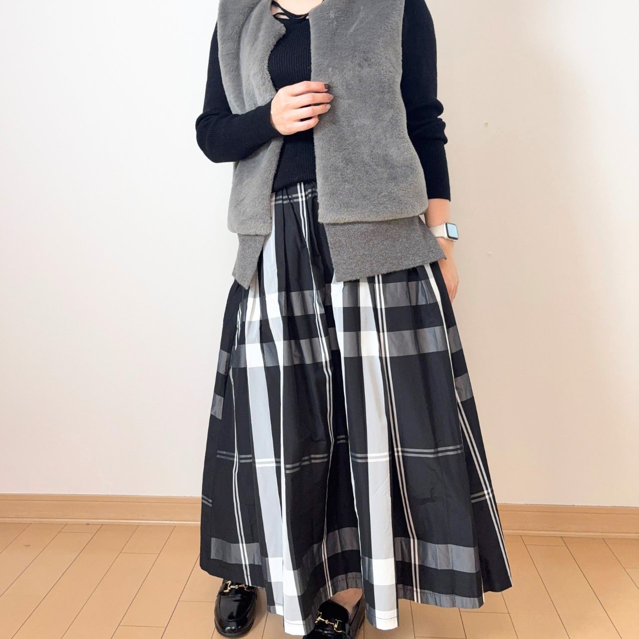 光沢タフタ チェックスカート|ベージュ・ブラック 2カラー展開/ウエストゴム仕様