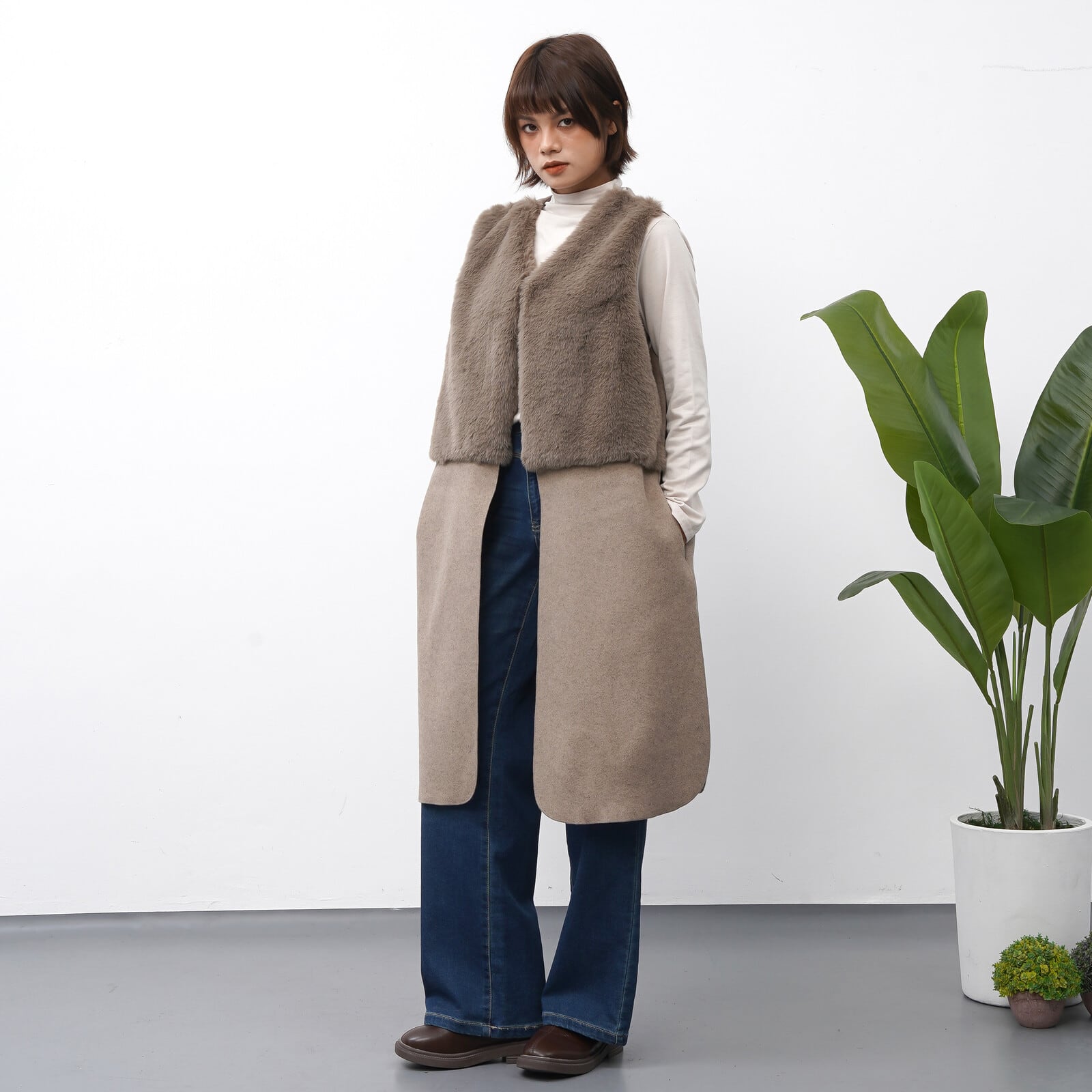 ロング丈ファーベスト|体型カバー&後ろ姿すっきり/4カラー展開