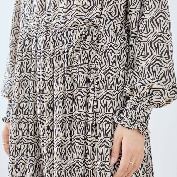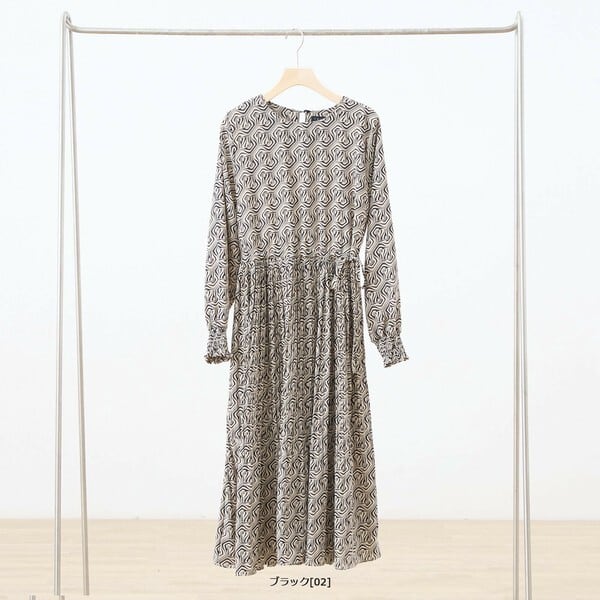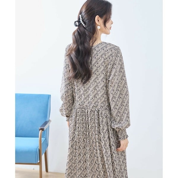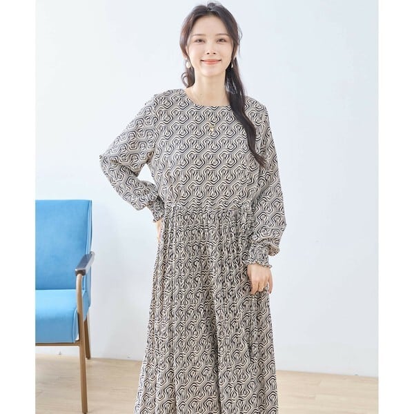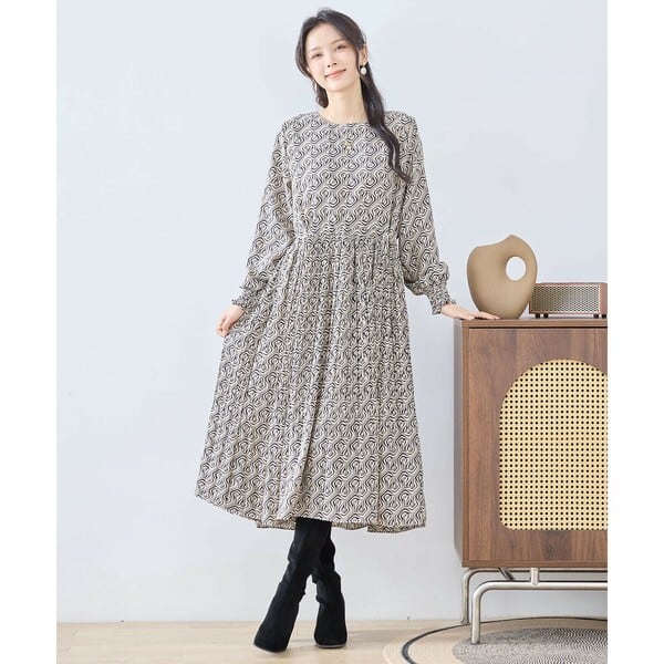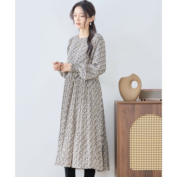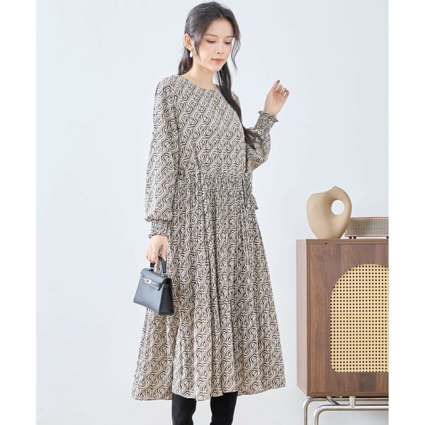 動きのある波模様プリントが目を引く、大人の女性にぴったりのワンピース。