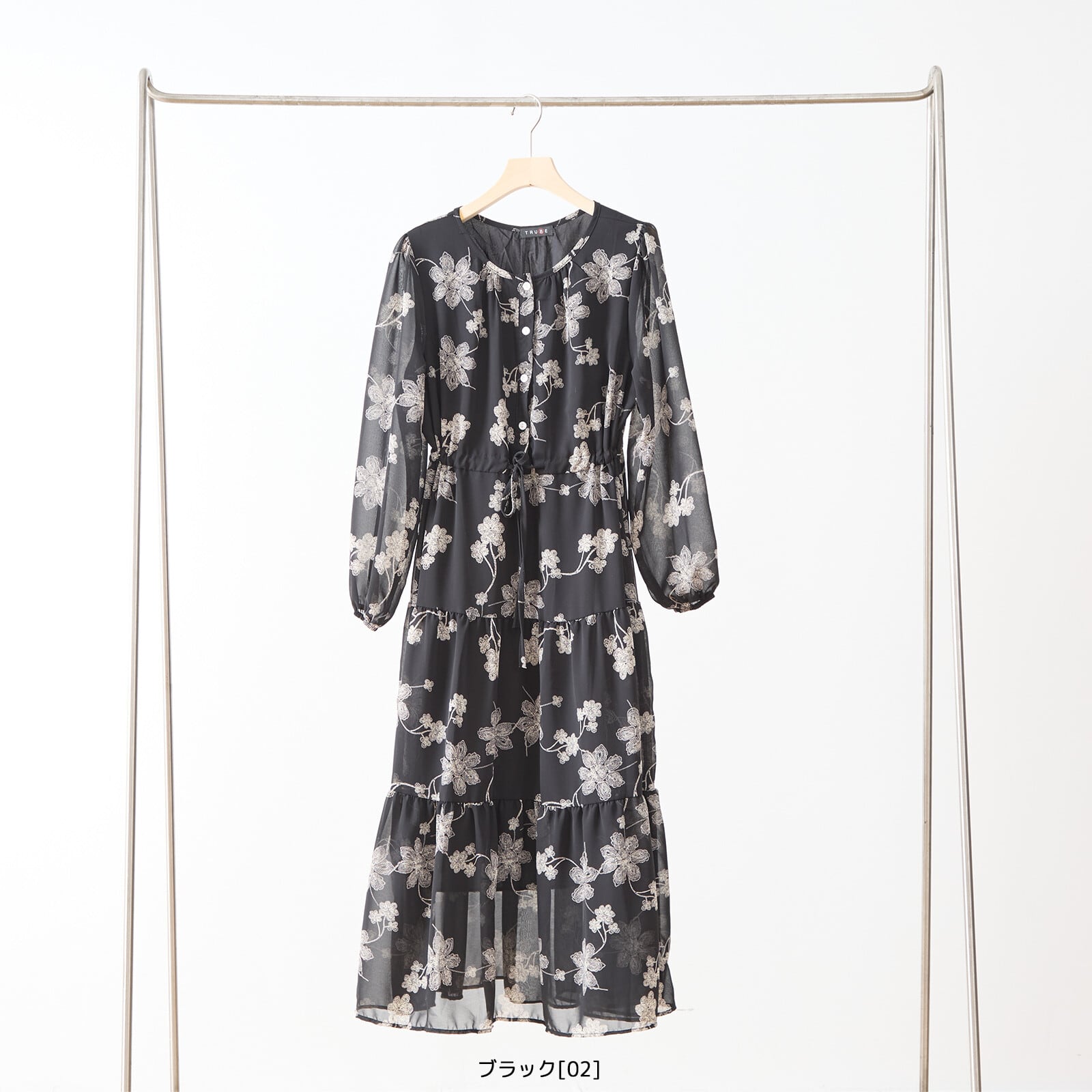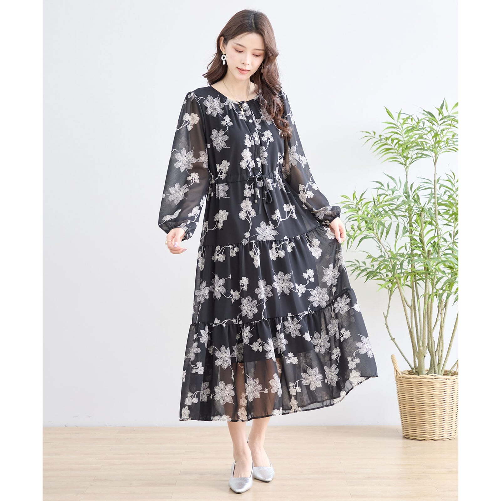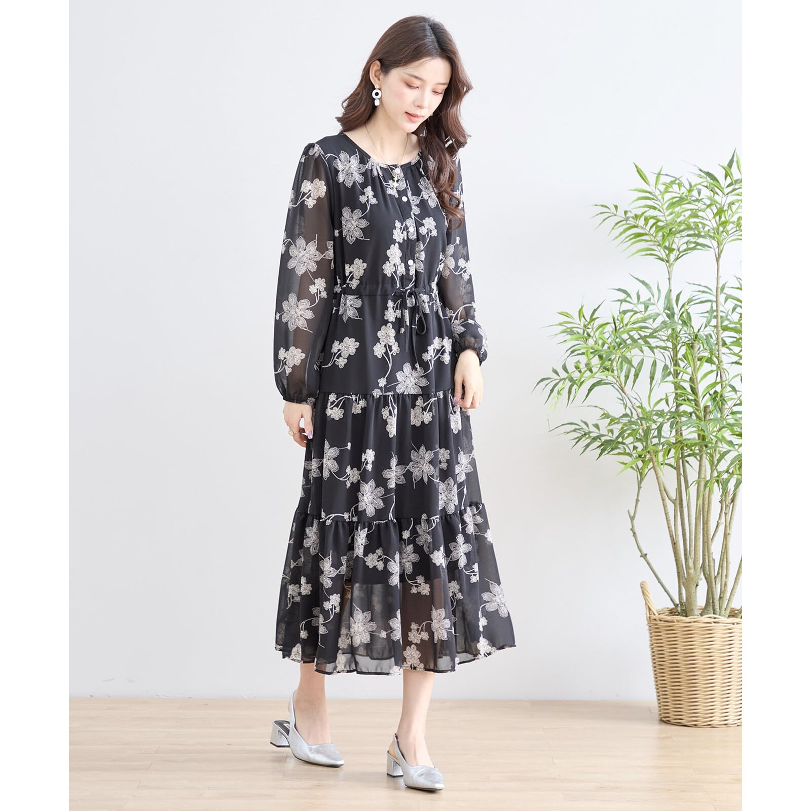 【L〜LL】エレガントフローラルティアードワンピース(N82-153)