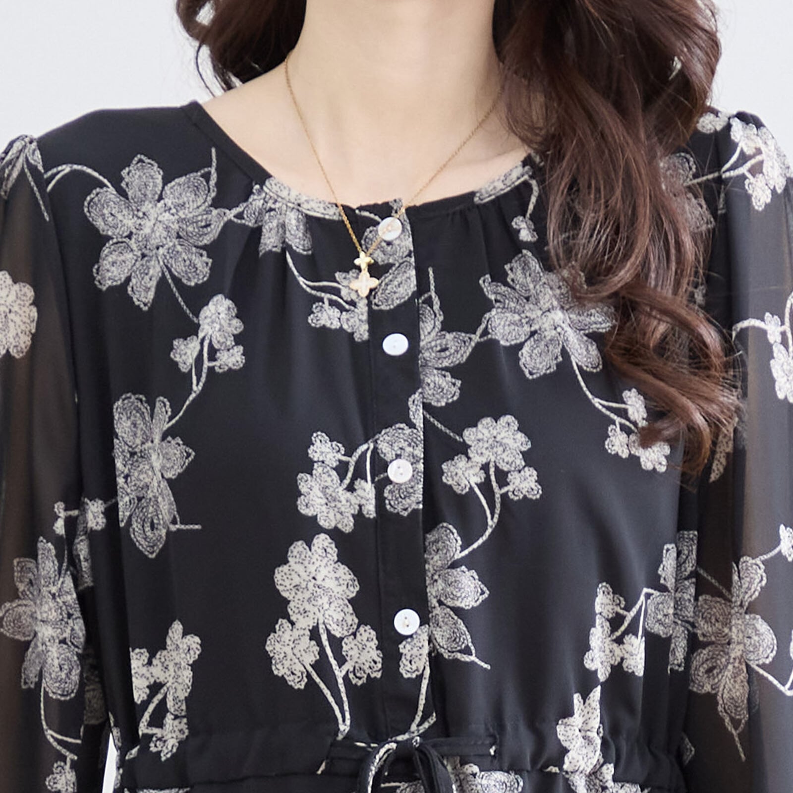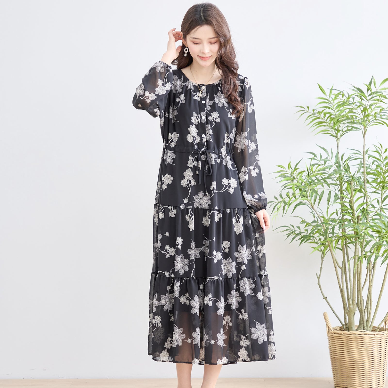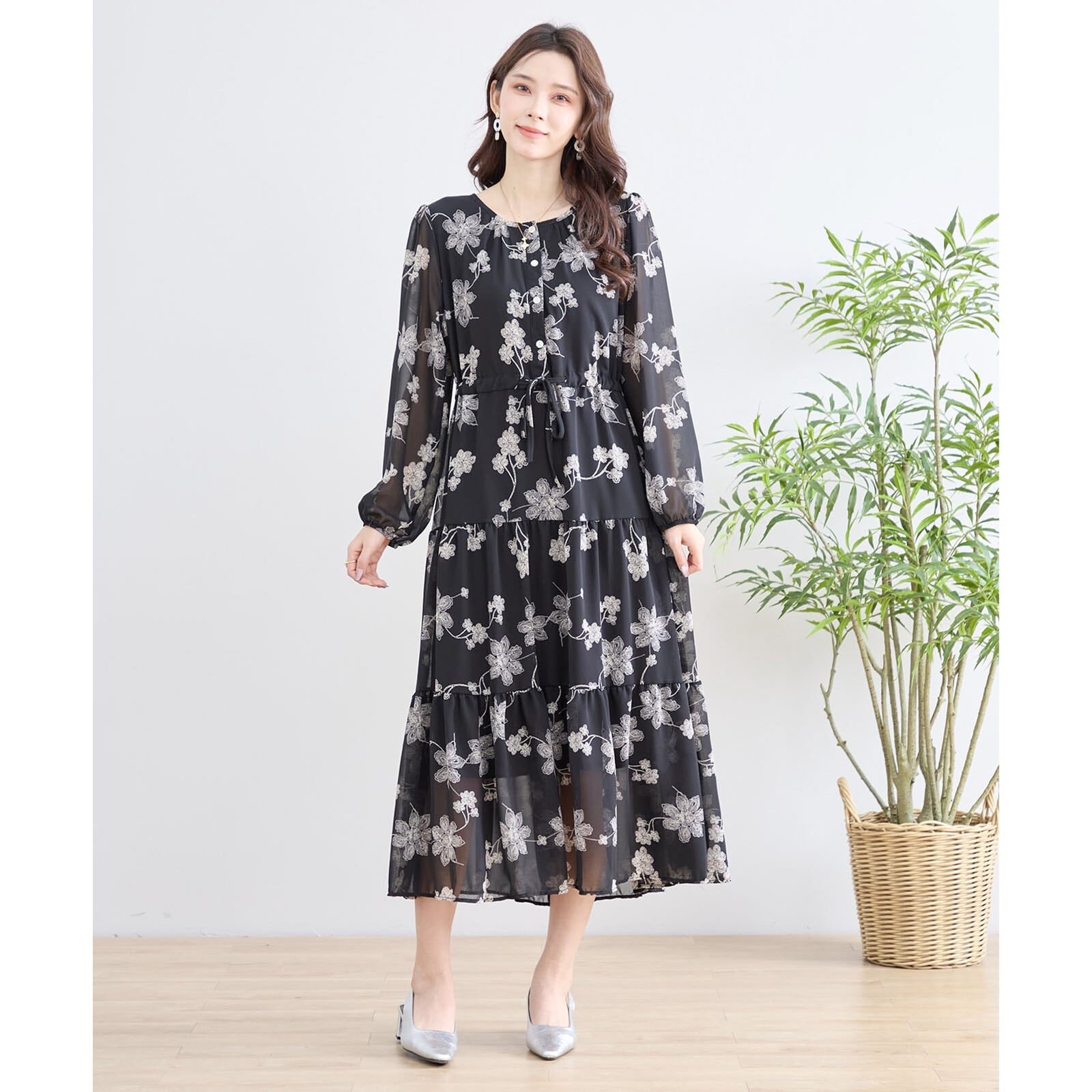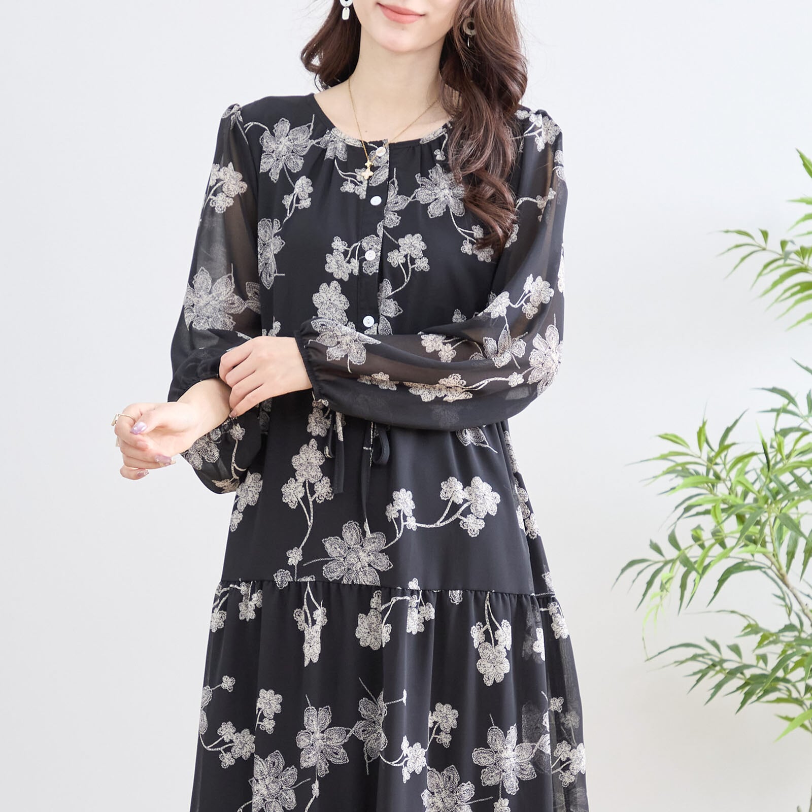 【L〜LL】エレガントフローラルティアードワンピース(N82-153)