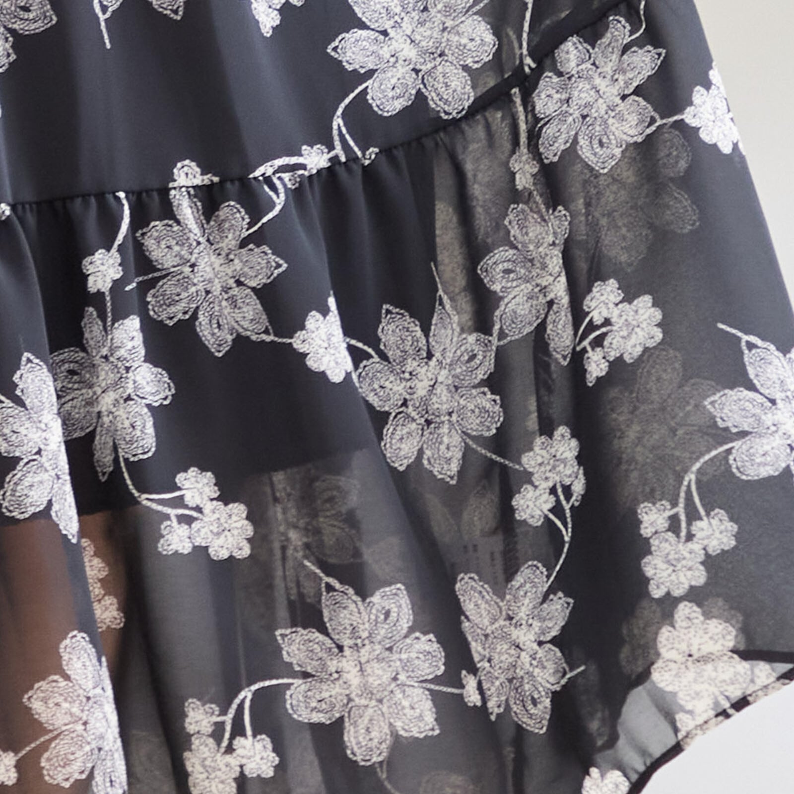 ふんわりと揺れるティアードデザインが女性らしさを演出し、軽やかな着心地が魅力です。