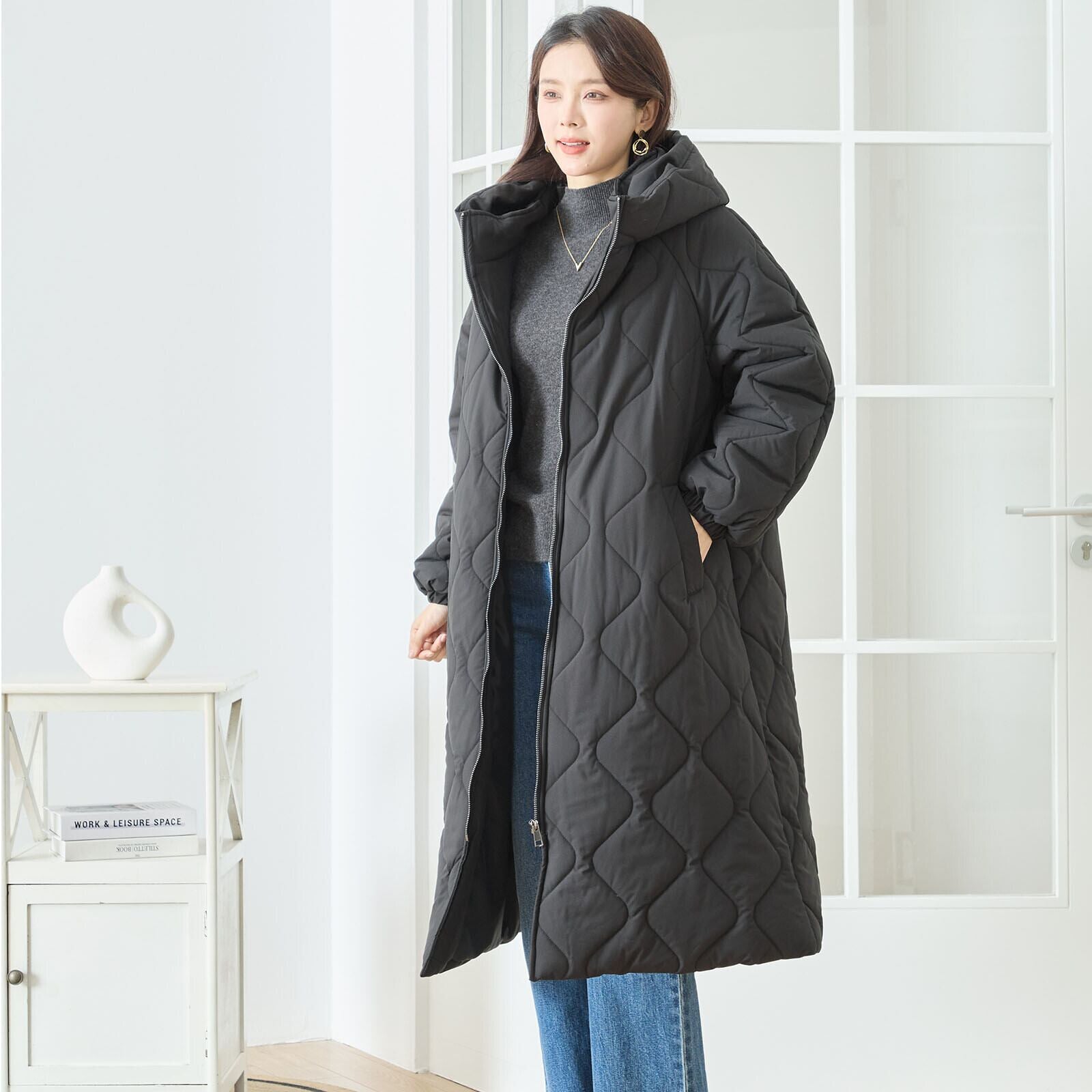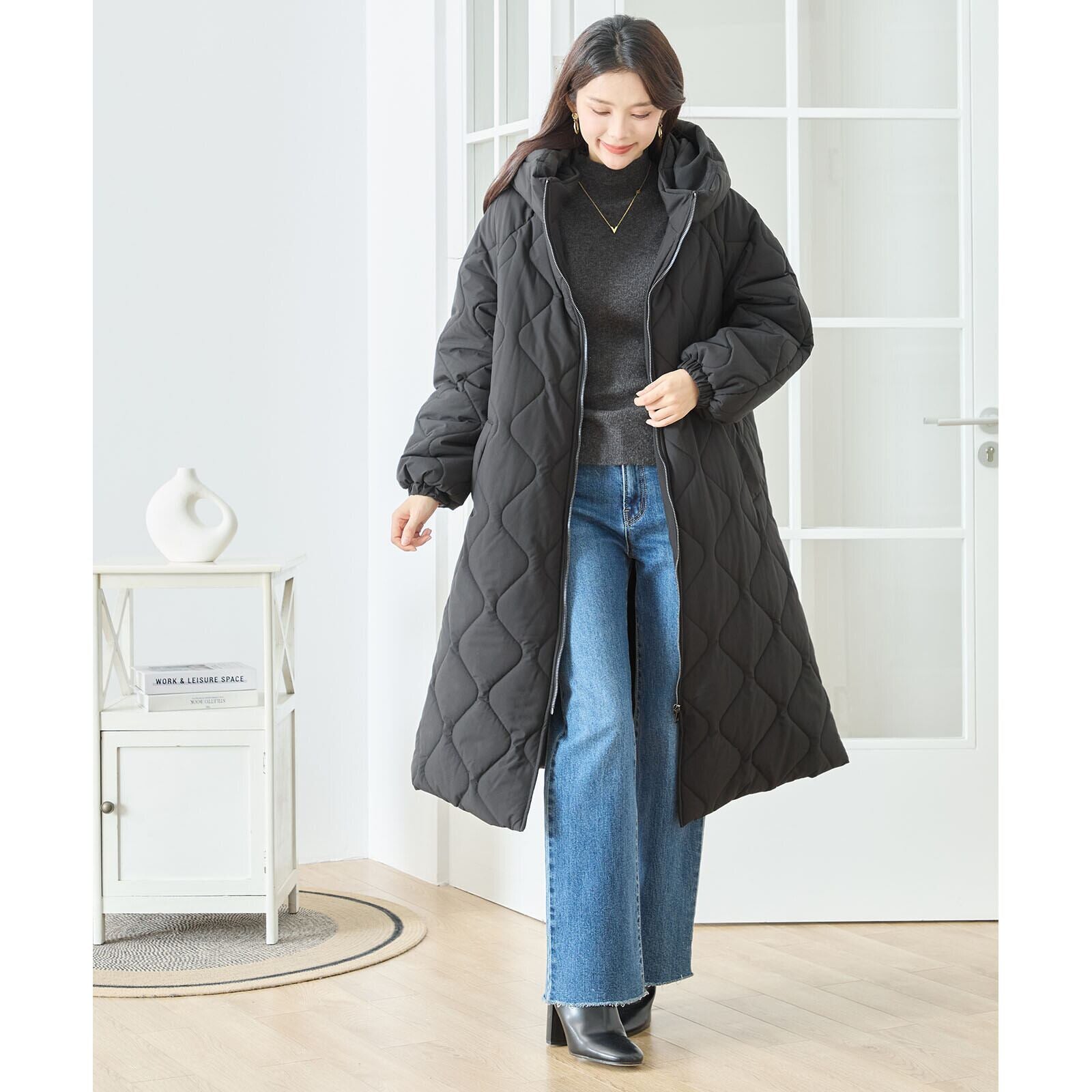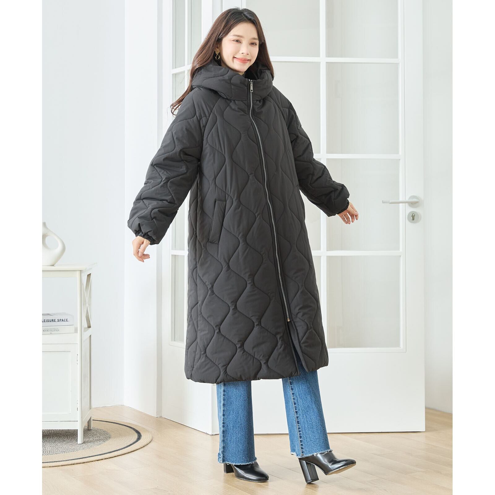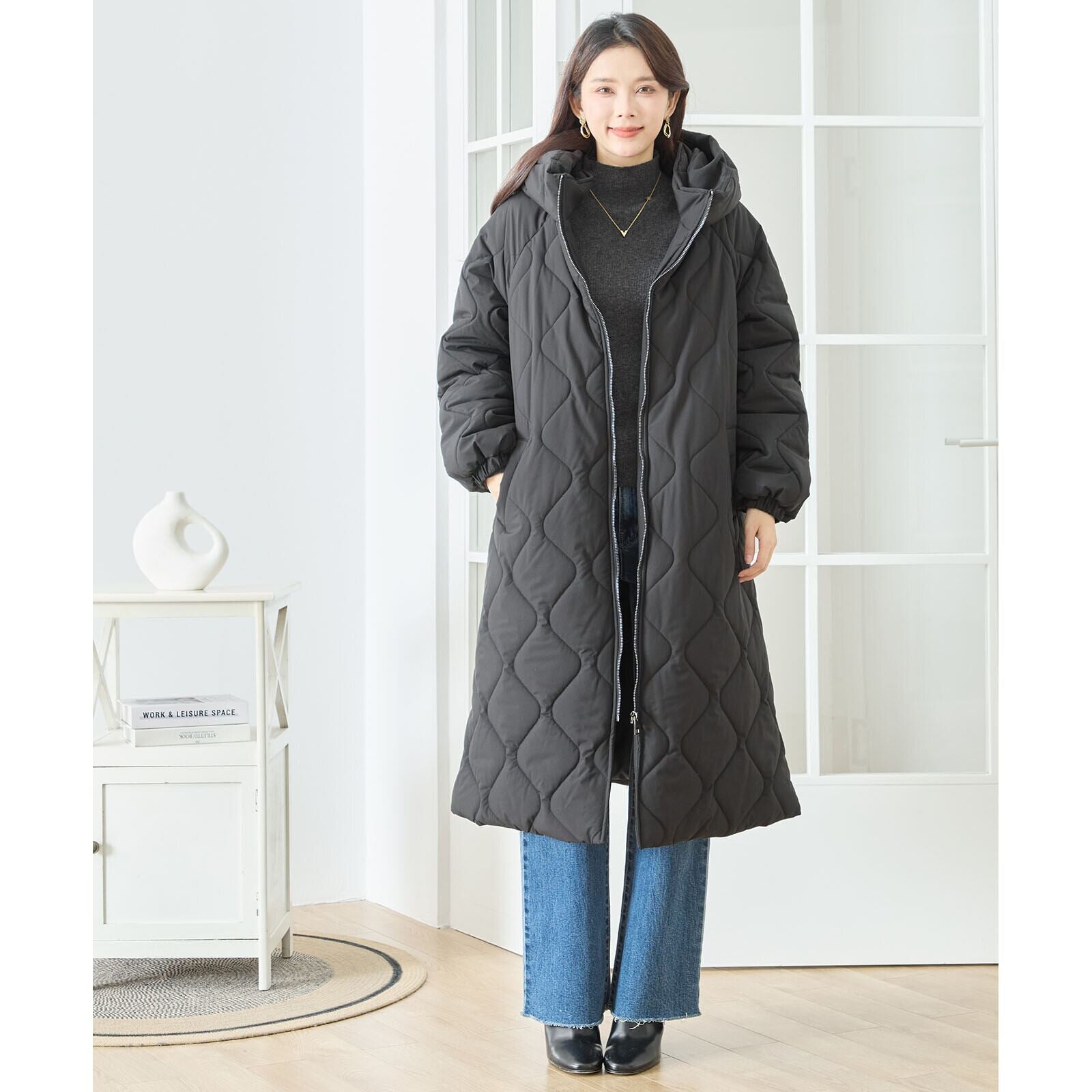 キルティングは柔らかな波キルトを採用し、体のラインに沿うように縦を意識したデザインで、すっきり見えを実現。膝下まで届くロング丈ながら軽い着心地で、普段使いはもちろん通勤にも活躍します。