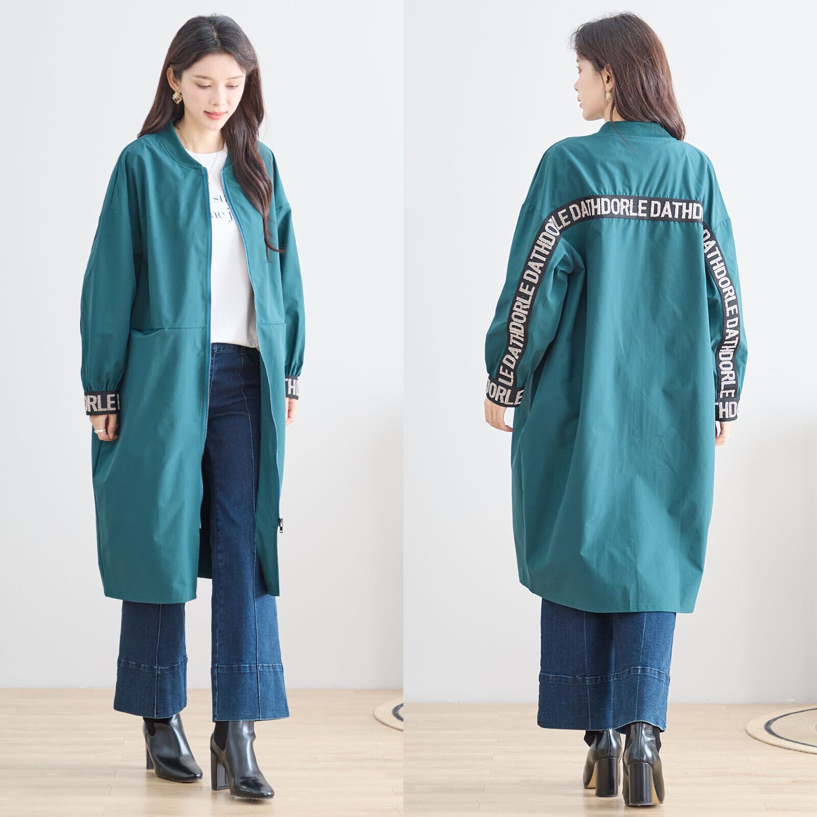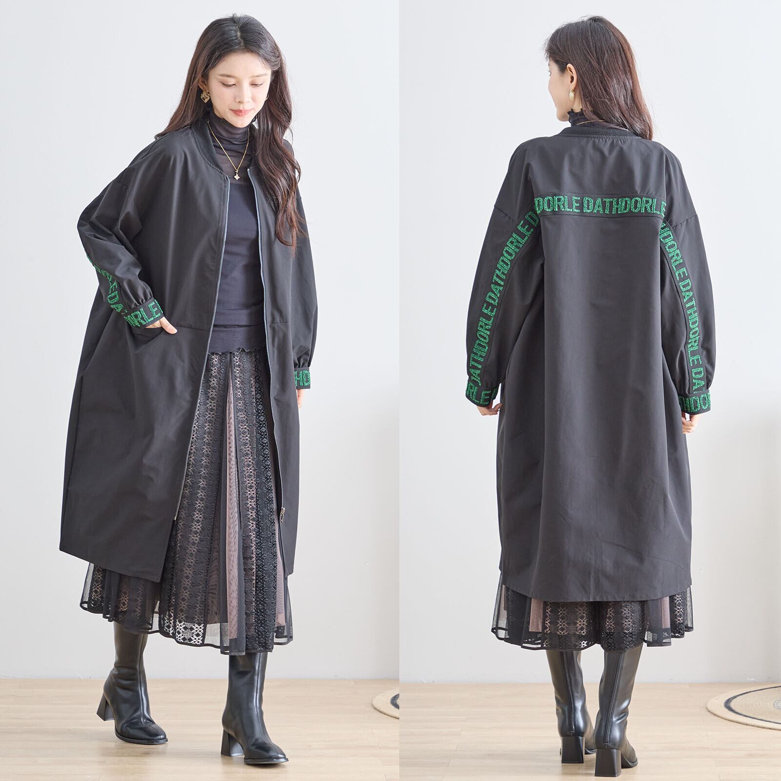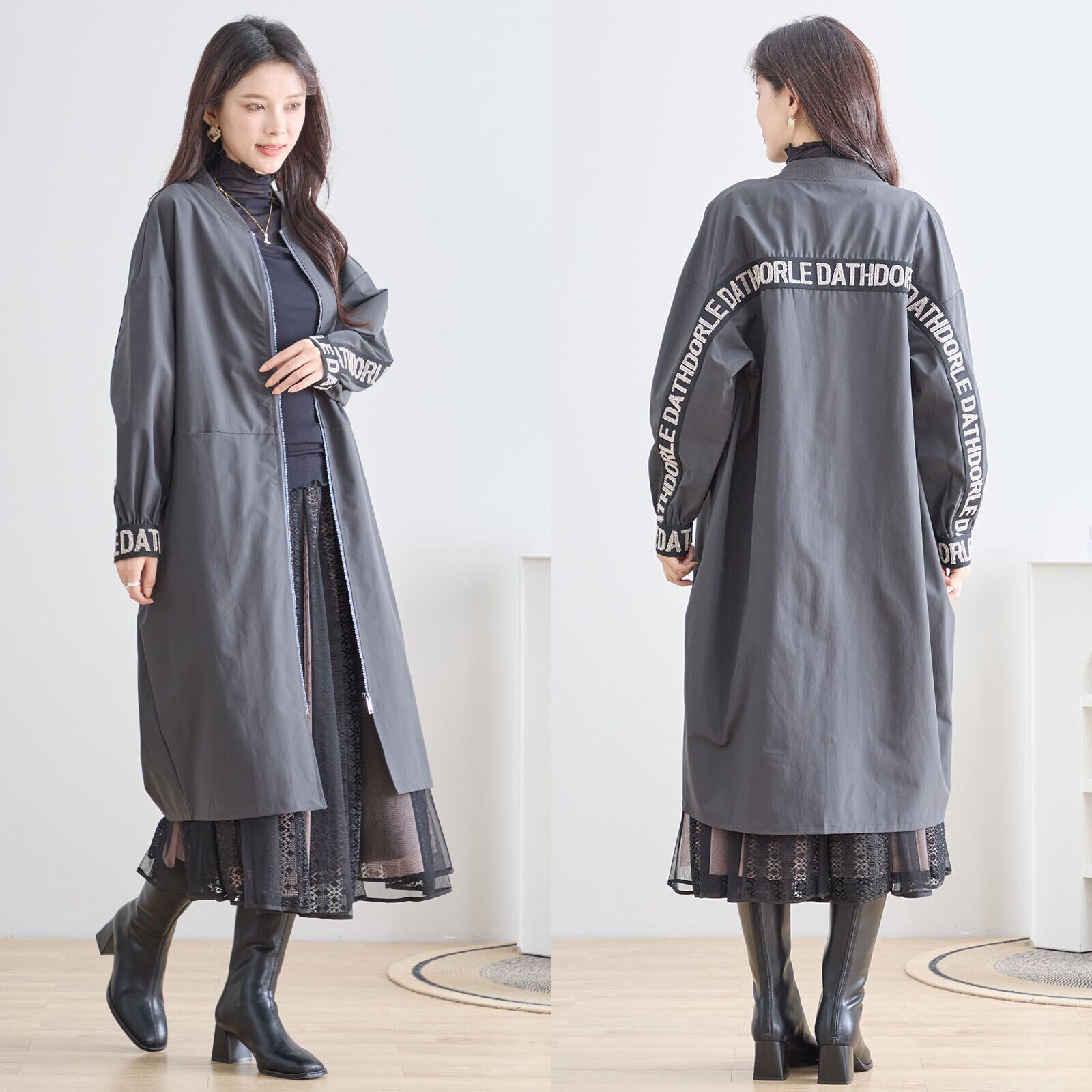 ロング丈スポーティーコート|立体刺繍ロゴ/ゆったりシルエット