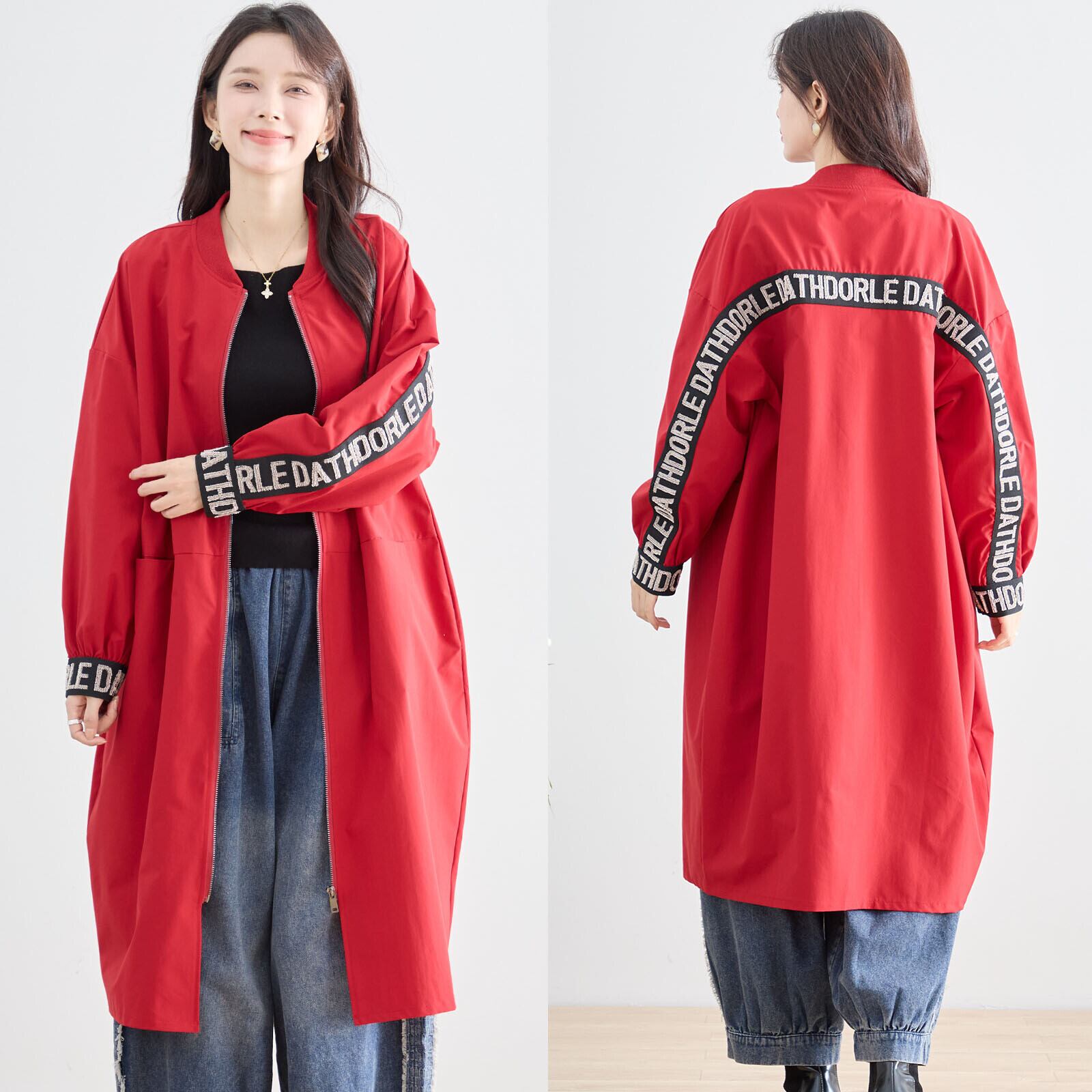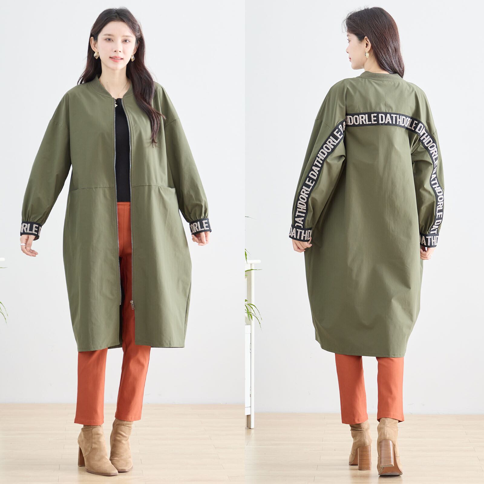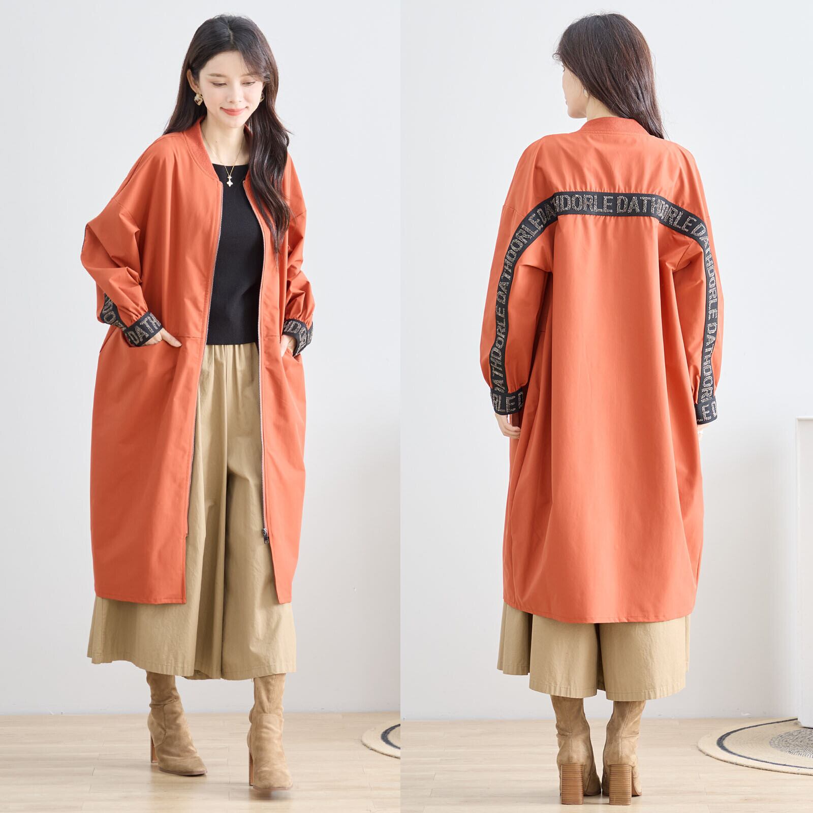 ロング丈スポーティーコート|立体刺繍ロゴ/ゆったりシルエット