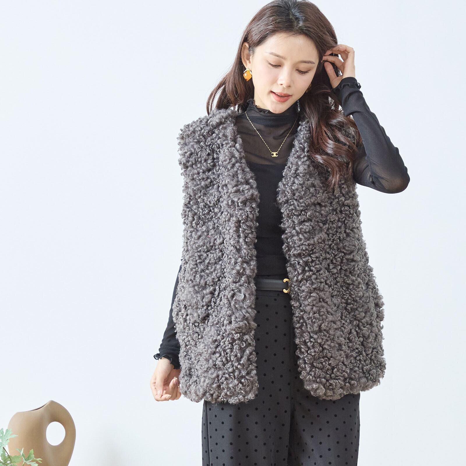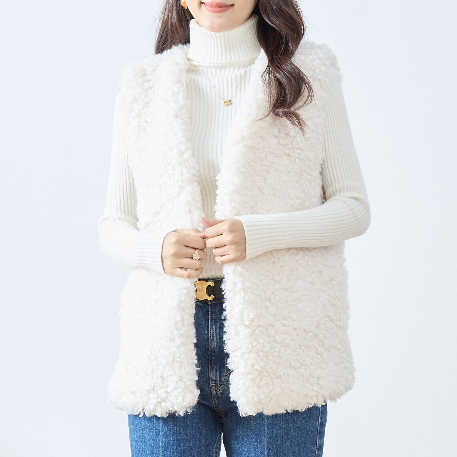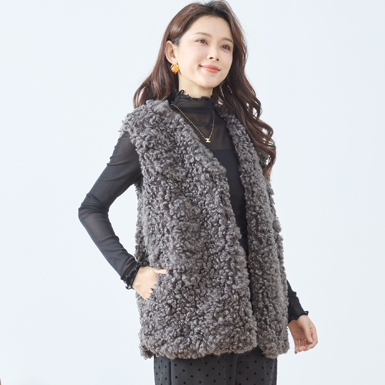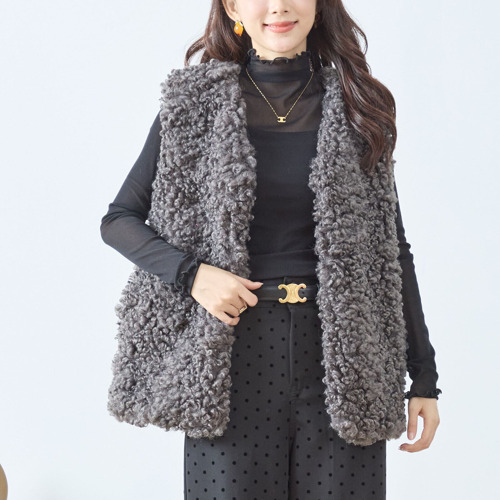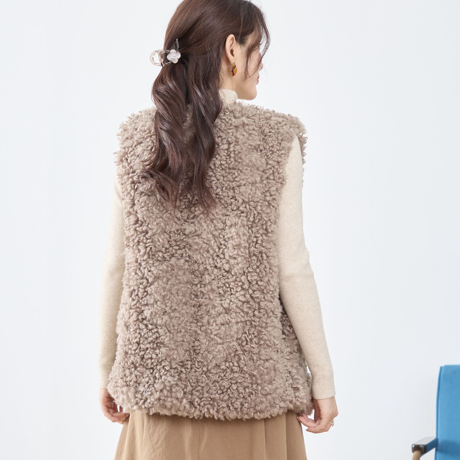 やわらかく包み込むような着心地の、ふわもこフェイクムートンベスト。