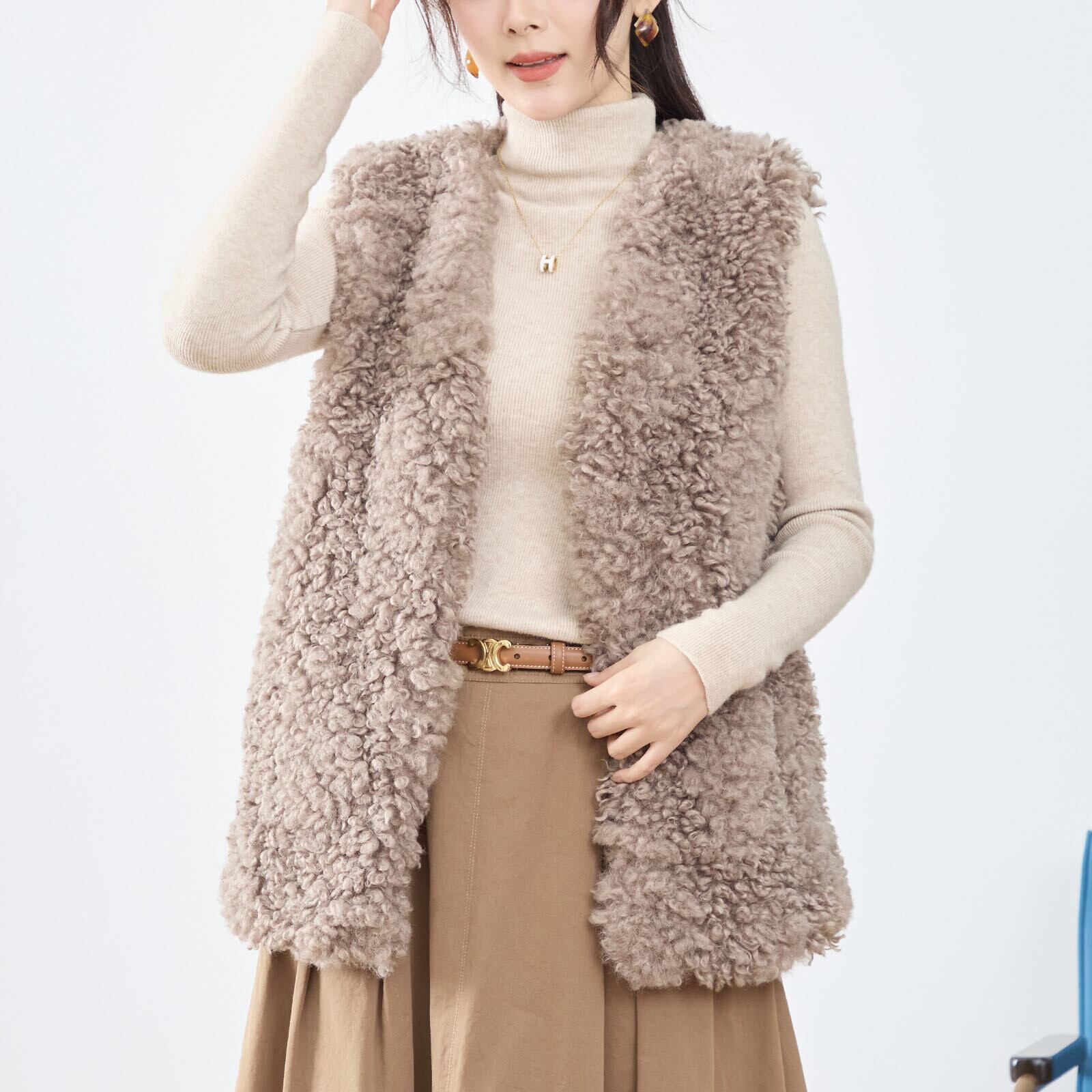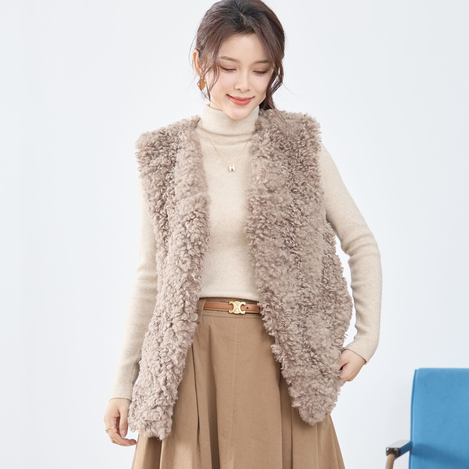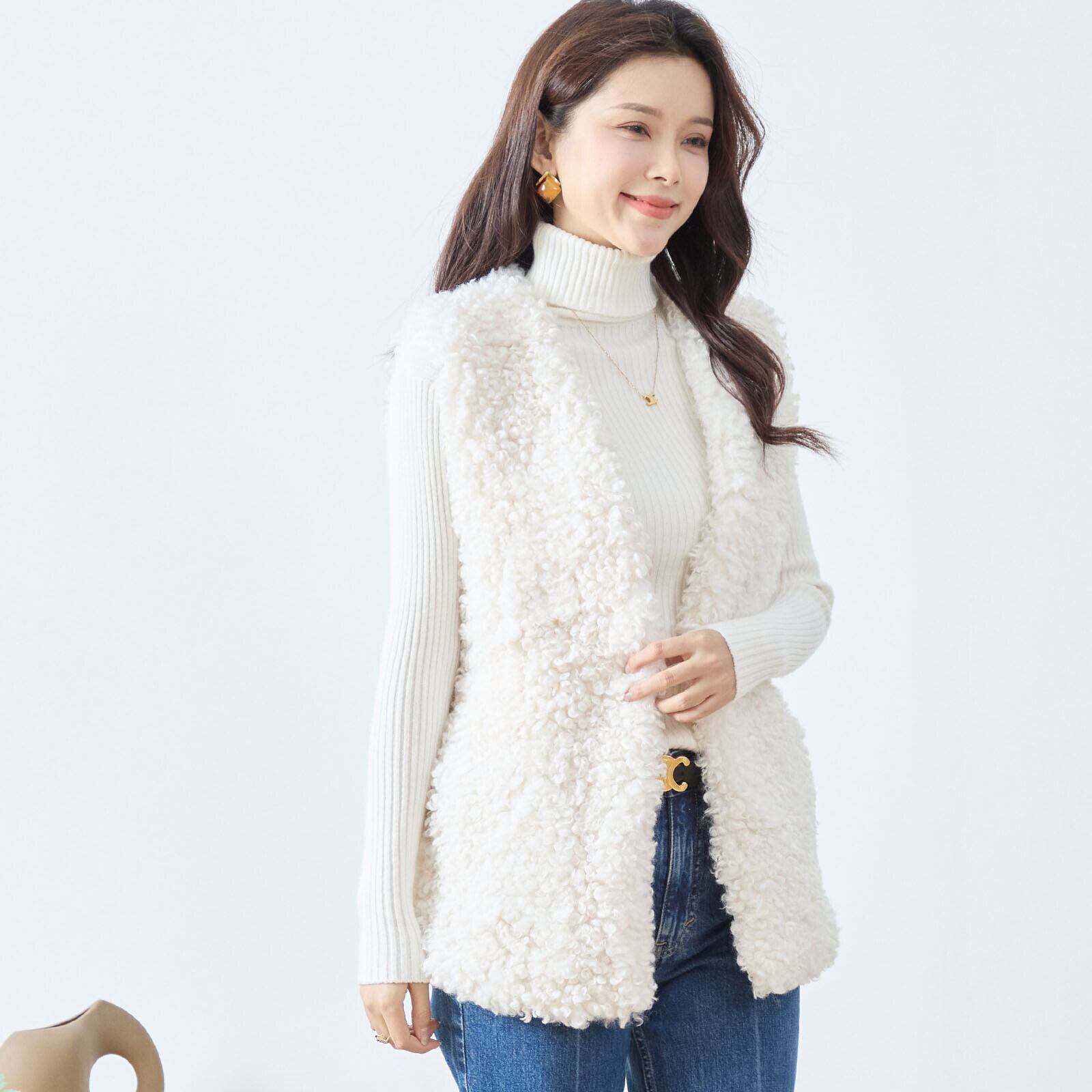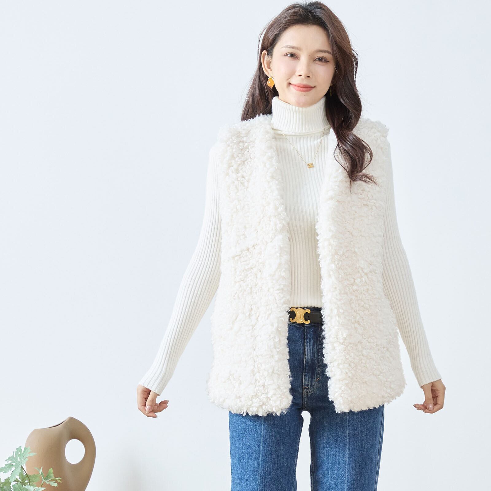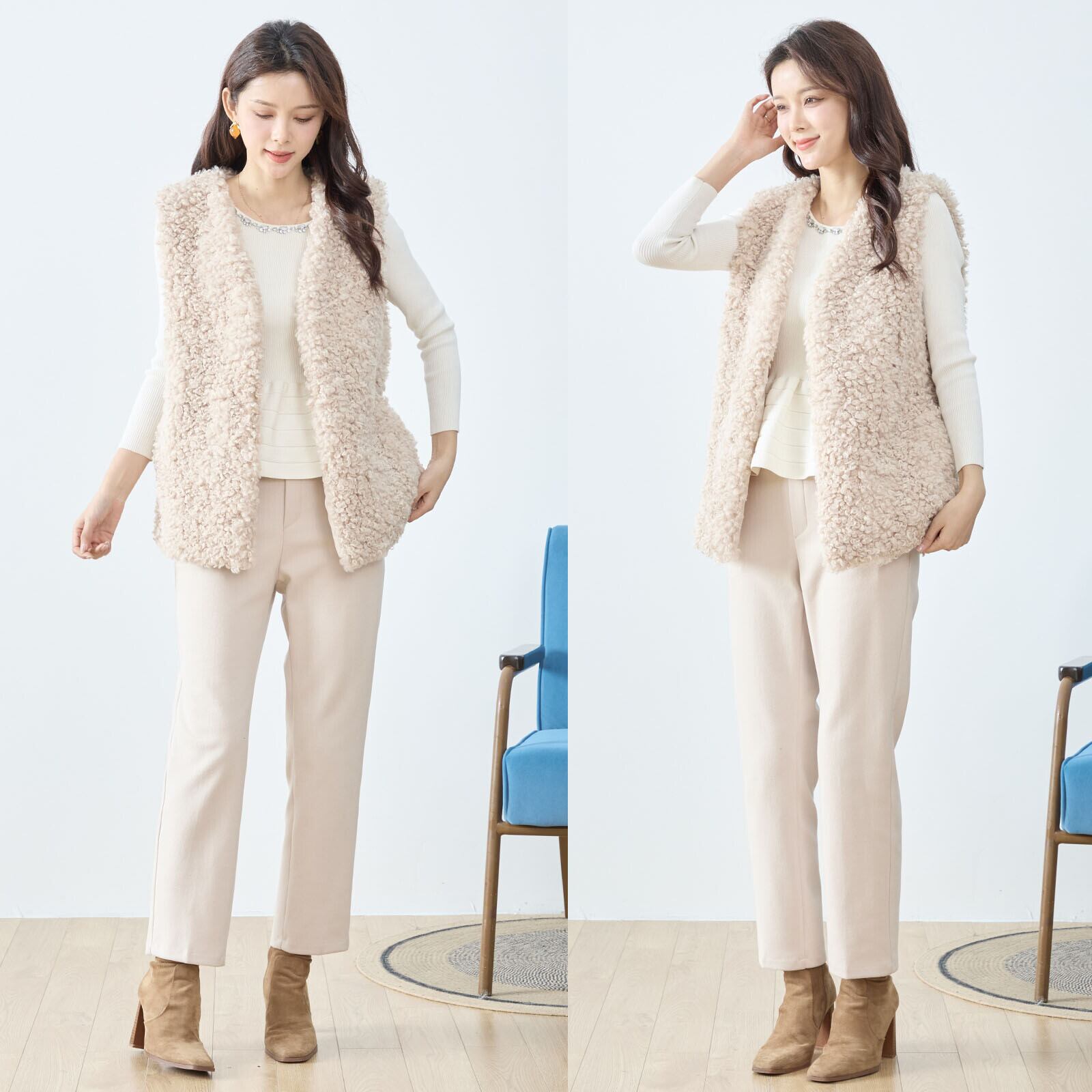 やわらかく包み込むような着心地の、ふわもこフェイクムートンベスト。