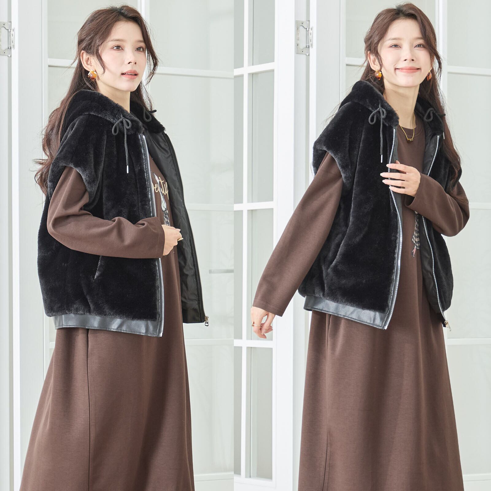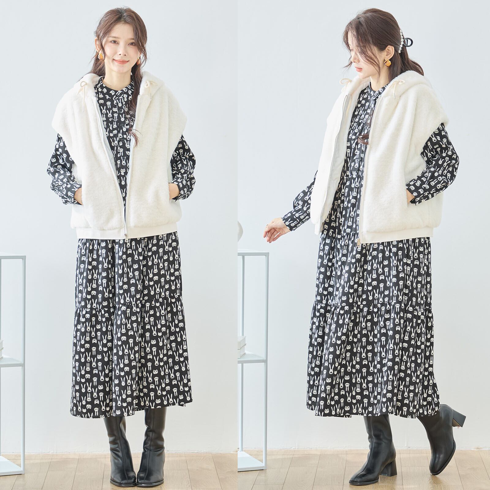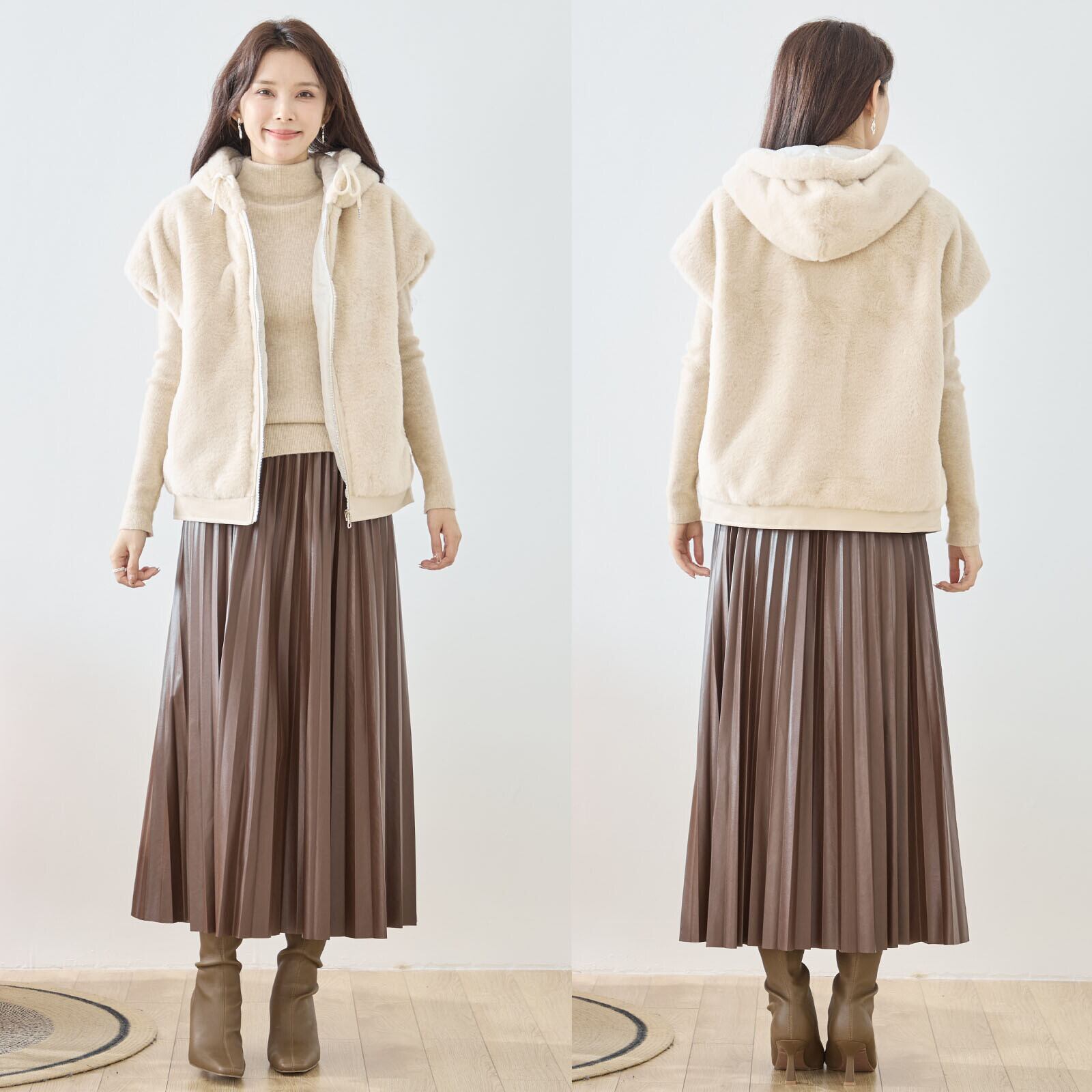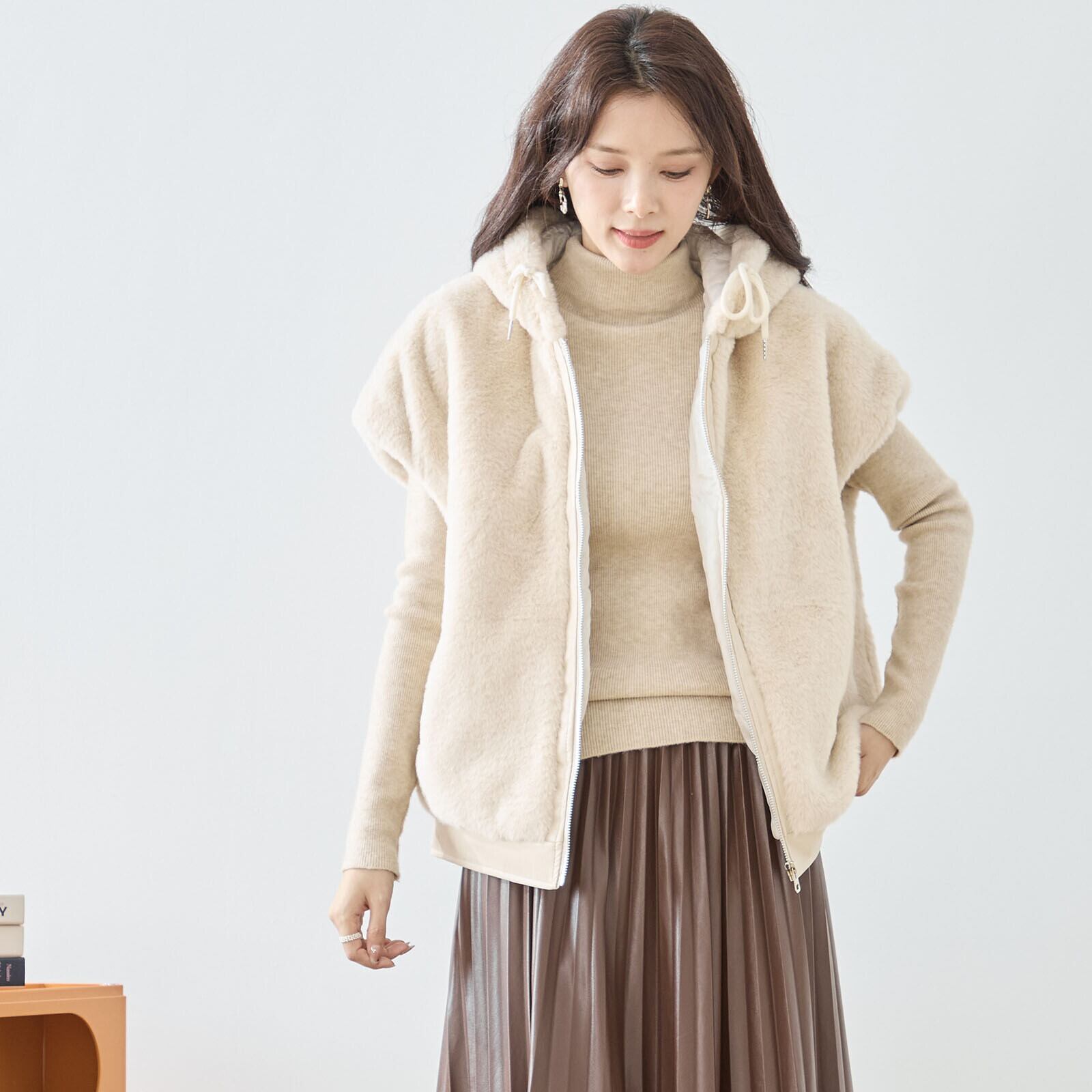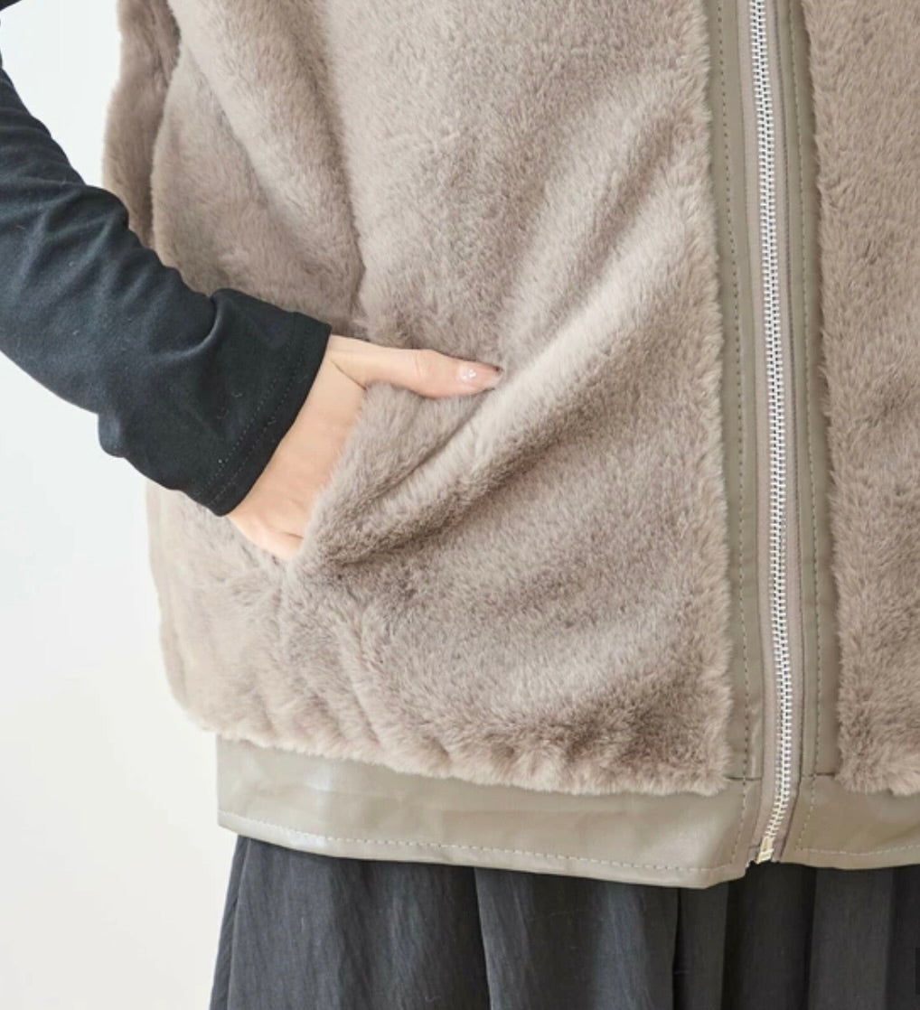 やわらかな肌ざわりと軽やかな着心地が魅力の、フード付きボアベスト。