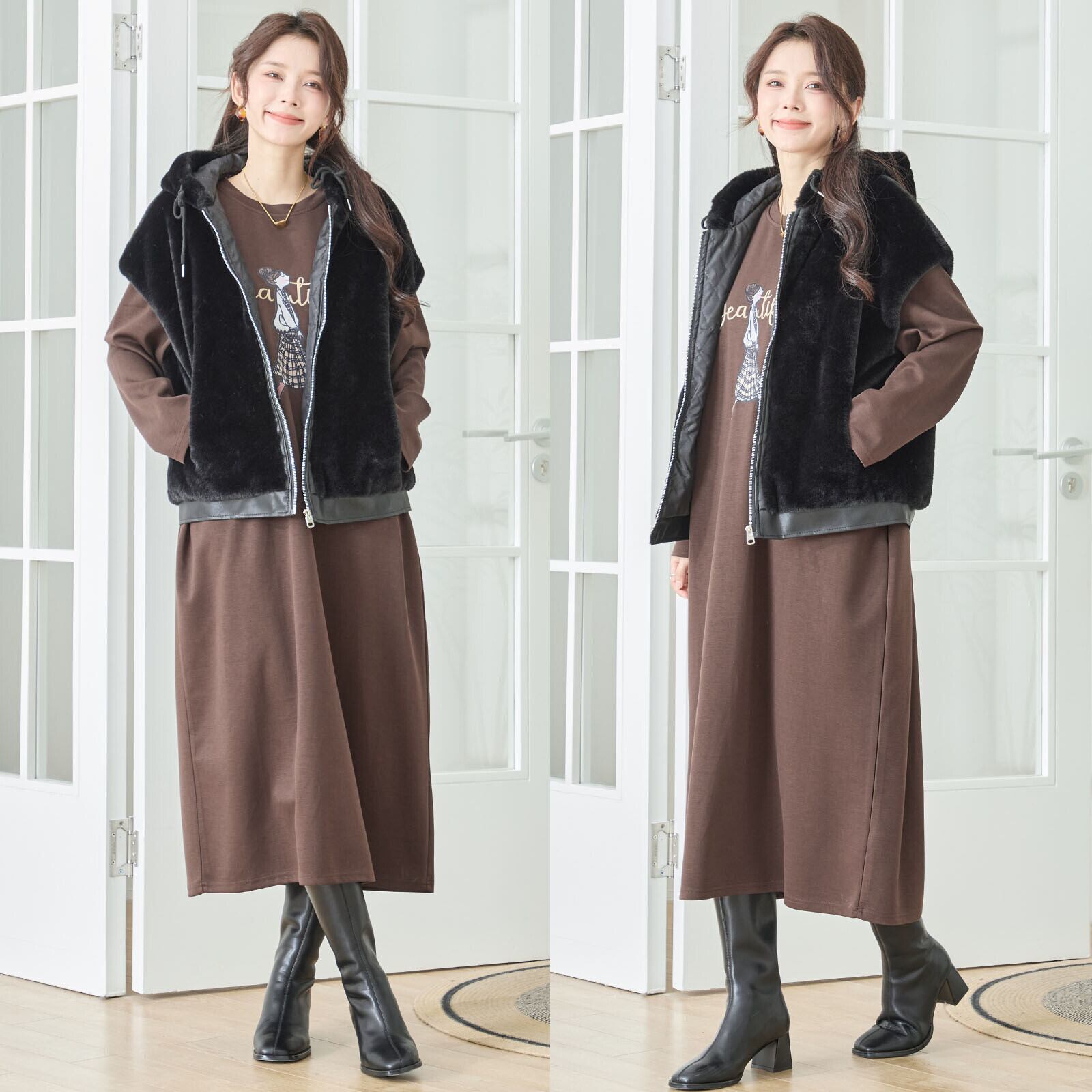 ふわ軽フード付きボアベスト/二の腕・お腹まわりをやさしくカバー
