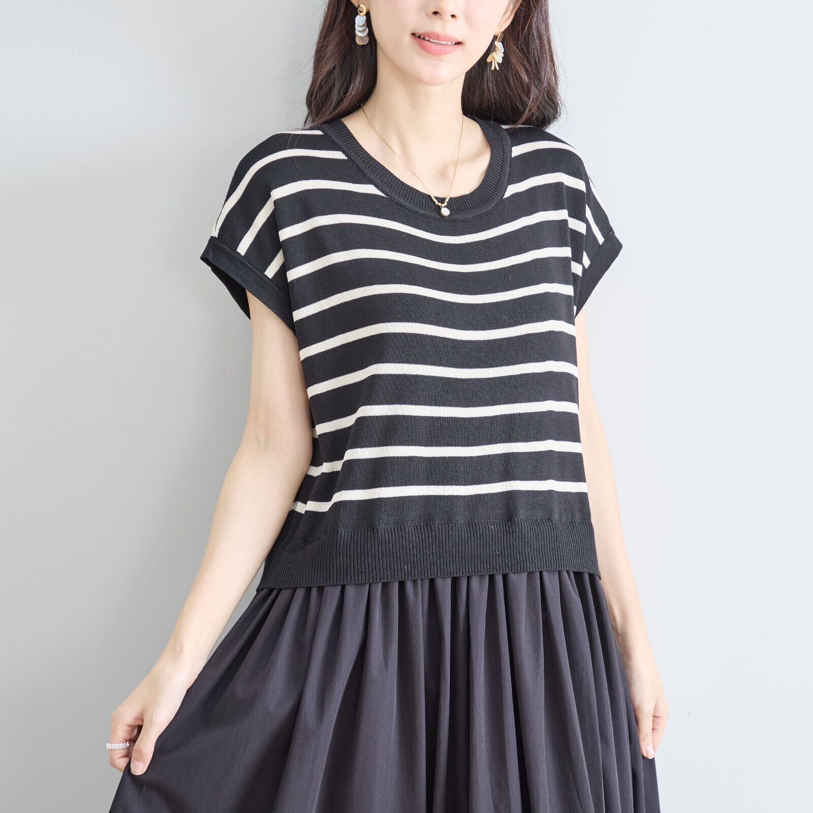 トップスは伸縮性のあるサマーニット素材で、軽やかでさらっとした肌触り。